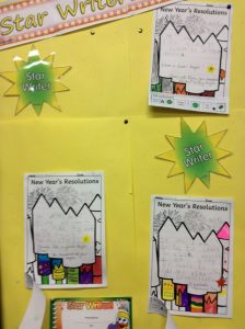Our writing task was to decide what our resolution would be. Our targets were to remember finger spaces between words, capital letters at the beginning of our sentences and to use full stops at the end.