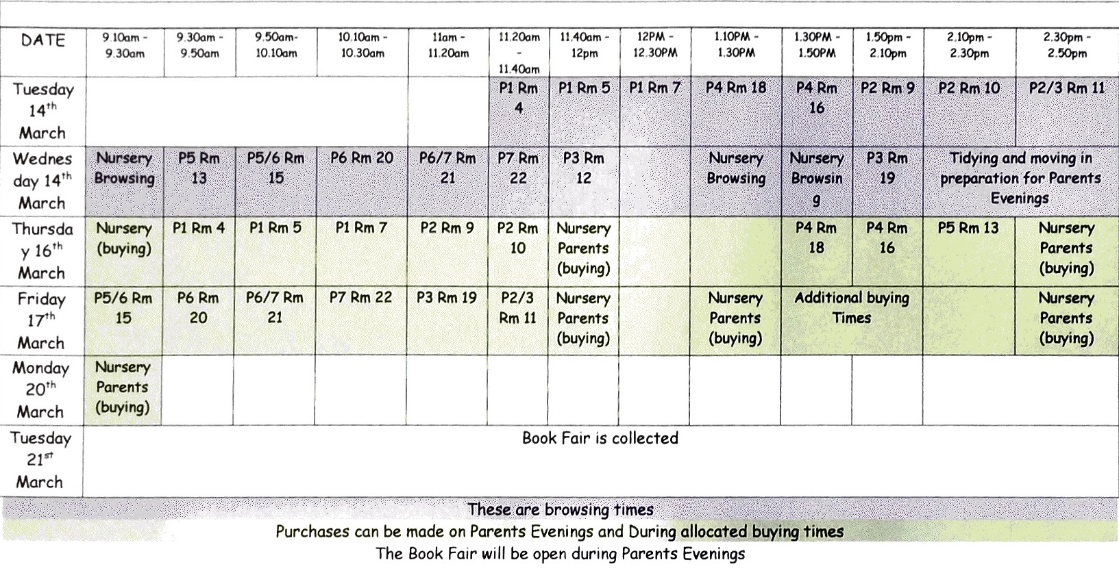 Book Fair Timetable